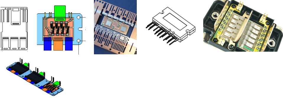 Power Module 功率模組亦即將數個功率半導體元件,採焊接方式封裝於承載基板及導線架之上,有些模組內包含單一功率元件,例如:MOSFET、IGBT,或是二極體;有些模組內也可能包含切換電壓的陶瓷電容,或是監控溫度的感測器。